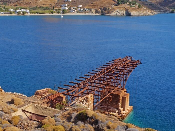 Sifnos war in der Antike als Gold-Insel bekannt. Heute lässt sich Gold nur noch in Spuren nachweisen. Die Vererzung ist an Füllungen von Karsthohlräumen gebunden. Der Abbau aus kleinen